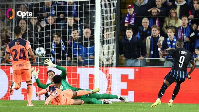 打破小贝纪录,布鲁日前锋福布斯是欧冠对巴萨传射最年轻球员